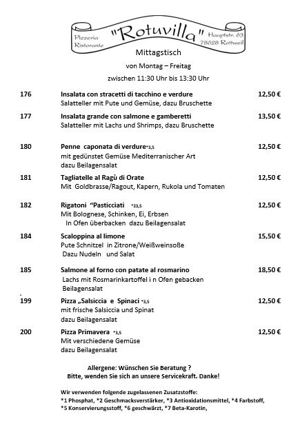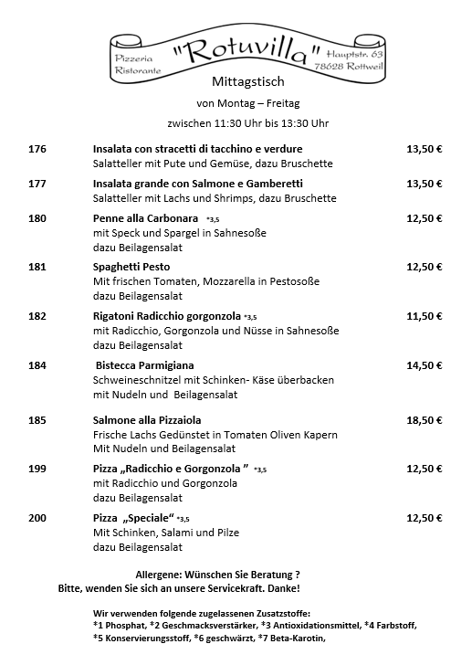 Die Mittagstischkarte ist gültig von Montag-Freitag von 11:30 bis 13:30 Uhr